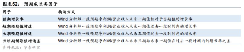 基于模型的盈利预测方法论丰富,而模型层面的构造和优化并非本文讨论重点,因此本节着重于利用分析师预期数据将成长因子的内涵从历史增长拓展至未来预测增长。本节主要基于预测净利润、收入两个字段,构建以下预期成长因子。