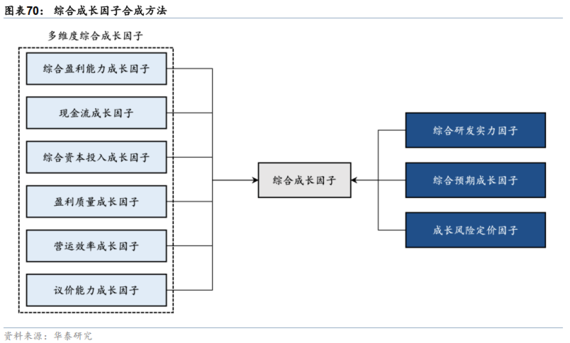 3、深入挖掘:从研发实力、预期成长、结合估值的成长风险定价三个角度,深入剖析企业成长之源,补充侧面刻画企业成长性的另类成长因子。