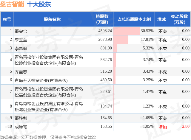 根据盘古智能2025年中报公布的十大股东详情如下: