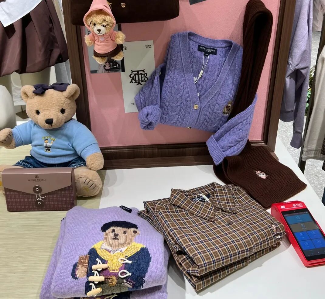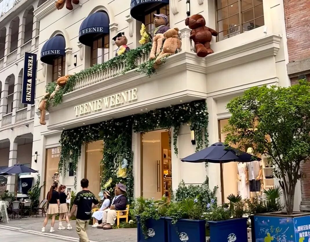 光是懂穿搭还不够,衣恋集团知道,想要真正成为用户不可替代的选择,IP才是重头戏,光这一招就堪称“服装界泡泡玛特”。很多同行以为把衣服印上品牌logo就算成功,它却搞起了泡泡玛特的玩法:一口气干出William和Katherine为代表的18只拟人化、个性鲜明的卡通小熊形象及其背后的小熊家族故事体系。不得不说,这一招相当高明,很多人去它的店都是冲着“小熊”而去,因此他在中国又有一个相当接地气的名字:小熊。好听又好记,完美形成品牌记忆点。