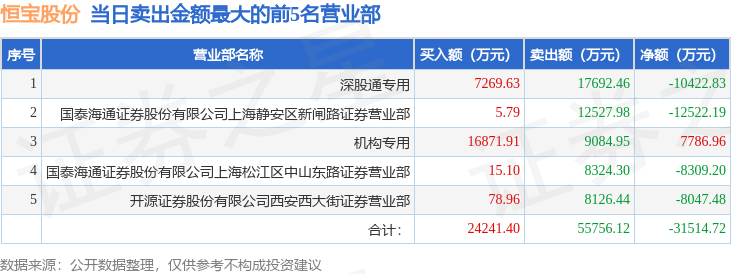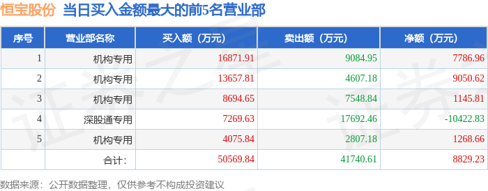 从龙虎榜公布的当日买卖数据来看,机构合计净买入1.93亿元,北向资金合计净卖出1.04亿元。上海超短帮、上海中山东路等知名游资榜上有名。(知名游资上海超短帮一般指国泰海通证券股份有限公司上海静安区新闸路证券营业部席位、知名游资上海中山东路一般指国泰海通证券股份有限公司上海松江区中山东路证券营业部席位,根据市场资料整理,仅供参考)
