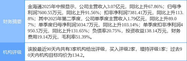 今日金海通(603061)涨8.63%,收盘报146.0元。