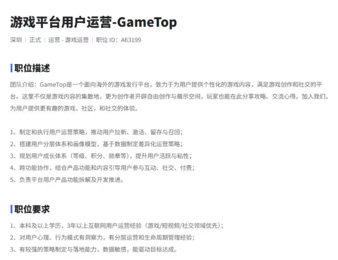 字节跳动已经在为 GameTop 进行人才招募。据官方介绍,GameTop 是一个面向海外的游戏发行平台,致力于为用户提供个性化的游戏内容,满足游戏创作和社交的平台。