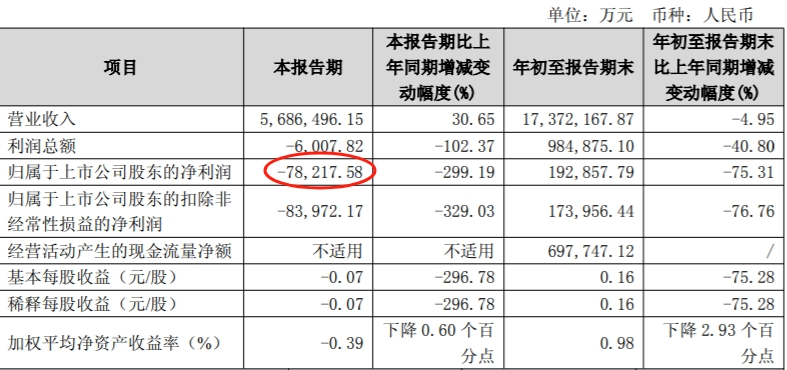同期的利润表现就没有如此乐观了。据披露,保利发展在第三季度实现营业收入568.65亿元,同比增长30.65%;利润总额为-6007.82万元,同比下降102.37%;归母净利润为-7.82亿元,同比大幅下降299.19%;基本每股收益为-0.07元,同比下降296.78%。
