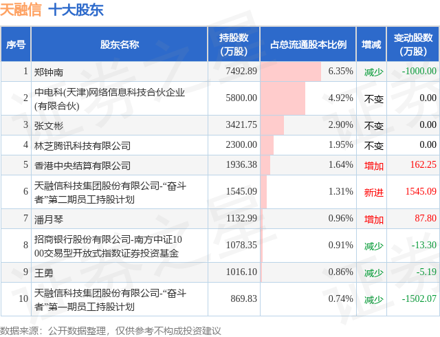 证券之星消息,10月30日天融信发布公告《天融信:关于持股5%以上股东权益变动至5%以下暨触及1%整数倍的提示性公告》,其股东郑钟南于2025年10月16日至2025年10月30日间合计减持870.02万股,占公司目前总股本的0.7376%,变动期间该股股价上涨6.58%,截止10月30日收盘报10.37元。