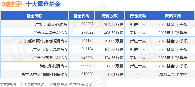 持有协鑫能科最多的基金为广发价值优势混合,目前规模为14.83亿元,最新净值1.2449(10月27日),较上一交易日上涨1.78%,近一年下跌17.03%。该基金现任基金经理为王明旭。