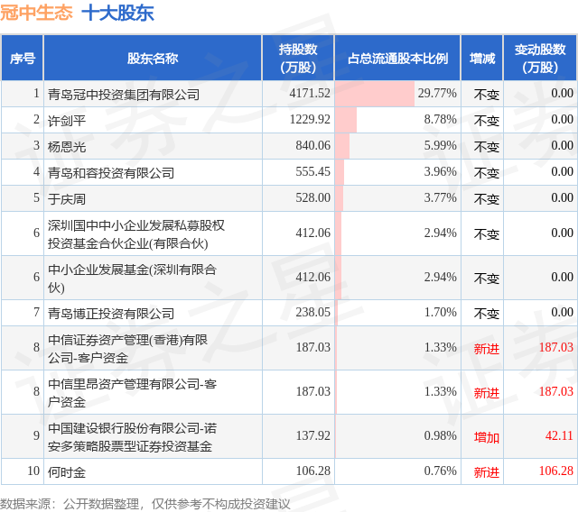 根据冠中生态2025年三季报公布的十大股东详情如下: