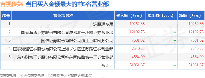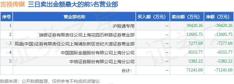 证券之星消息,沪深交易所2025年11月4日公布的交易公开信息显示,吉视传媒(601929)因有价格涨跌幅限制的日收盘价格涨幅偏离值达到7%的前五只证券,非ST、*ST和S证券连续三个交易日内收盘价格涨幅偏离值累计达到20%的证券,有价格涨跌幅限制的日换手率达到20%的前五只证券登上龙虎榜。此次是近5个交易日内第1次上榜。
