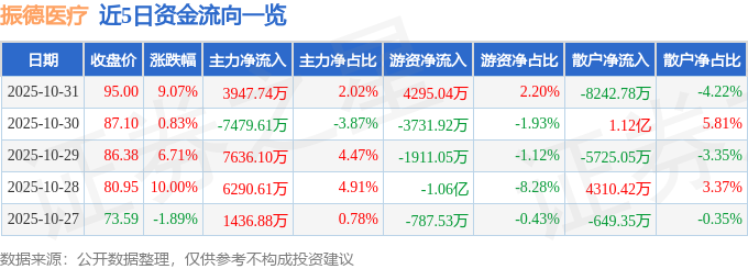 10月31日的资金流向数据方面,主力资金净流入3947.74万元,占总成交额2.02%,游资资金净流入4295.04万元,占总成交额2.2%,散户资金净流出8242.78万元,占总成交额4.22%。