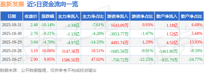 10月31日的资金流向数据方面,主力资金净流出1.34亿元,占总成交额7.61%,游资资金净流入1643.09万元,占总成交额0.93%,散户资金净流入1.18亿元,占总成交额6.68%。