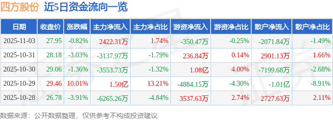 11月3日的资金流向数据方面,主力资金净流入2422.31万元,占总成交额1.74%,游资资金净流出350.47万元,占总成交额0.25%,散户资金净流出2071.84万元,占总成交额1.49%。