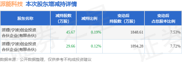 证券之星消息,11月7日派能科技发布公告《派能科技:关于持股5%以上股东提前终止减持计划、减持股份结果暨部分股份被冻结进展公告》,其股东派锂(宁波)创业投资合伙企业(有限合伙)于2025年9月5日至2025年11月6日间合计减持75.33万股,占公司目前总股本的0.3071%,变动期间该股股价上涨16.04%,截止11月6日收盘报68.87元。