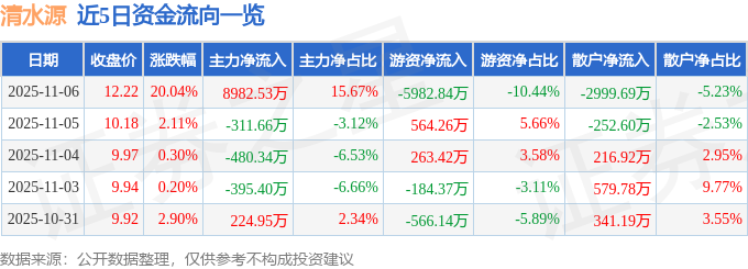 11月6日的资金流向数据方面,主力资金净流入8982.53万元,占总成交额15.67%,游资资金净流出5982.84万元,占总成交额10.44%,散户资金净流出2999.69万元,占总成交额5.23%。
