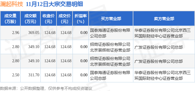 证券之星消息,11月12日澜起科技发生大宗交易,交易数据如下: