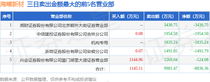 从龙虎榜公布的三日买卖数据来看,机构合计净卖出1835.24万元。厦门湖里大道等知名游资榜上有名。(知名游资厦门湖里大道一般指兴业证券股份有限公司厦门湖里大道证券营业部席位、知名游资厦门湖里大道一般指兴业证券股份有限公司厦门湖里大道证券营业部席位,根据市场资料整理,仅供参考)