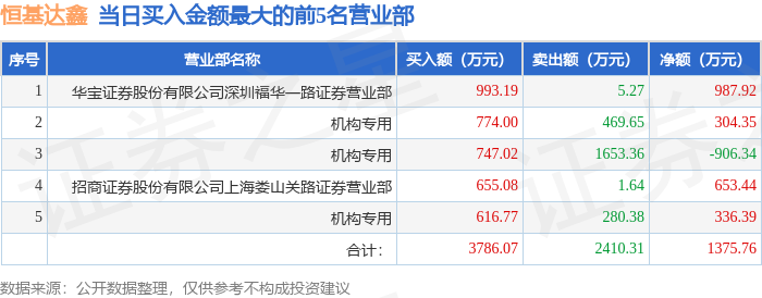 从龙虎榜公布的当日买卖数据来看,机构合计净卖出504.29万元。