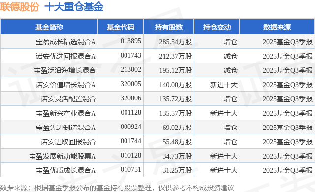 根据2025基金Q3季报公募基金重仓股数据,重仓该股的公募基金共14家,其中持有数量最多的公募基金为宝盈基金的宝盈成长精选混合A。宝盈成长精选混合A目前规模为5.89亿元,最新净值1.1019(11月7日),较上一交易日下跌0.5%,近一年上涨2.0%。该公募基金现任基金经理为李巍宇。李巍宇在任的基金产品包括:宝盈泛沿海增长混合,管理时间为2024年12月24日至今,期间收益率为34.95%;宝盈价值成长混合A,管理时间为2025年8月30日至今,期间收益率为11.43%。