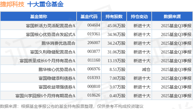 根据2025基金Q3季报公募基金重仓股数据,重仓该股的公募基金共9家,其中持有数量最多的公募基金为富国基金的富国新活力灵活配置混合A。富国新活力灵活配置混合A目前规模为4.13亿元,最新净值3.2682(11月7日),较上一交易日上涨0.59%,近一年上涨33.06%。该公募基金现任基金经理为吴栋栋。吴栋栋在任的基金产品包括:富国质量成长6个月持有混合A,管理时间为2022年2月28日至今,期间收益率为44.13%;富国核心优势混合发起式A,管理时间为2023年12月1日至今,期间收益率为76.07%。