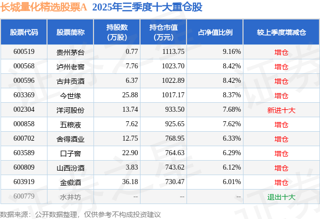 根据2025基金Q3季报公募基金重仓股数据,重仓该股的公募基金共3家,其中持有数量最多的公募基金为长城基金的长城量化精选股票A。长城量化精选股票A目前规模为0.31亿元,最新净值0.8883(11月7日),较上一交易日下跌0.35%,近一年下跌19.91%。该公募基金现任基金经理为雷俊。雷俊在任的基金产品包括:长城中证500指数增强A,管理时间为2018年11月30日至今,期间收益率为159.96%;长城久泰沪深300指数A,管理时间为2018年11月30日至今,期间收益率为56.02%;长城创业板指数增强A,管理时间为2019年1月29日至今,期间收益率为178.08%;