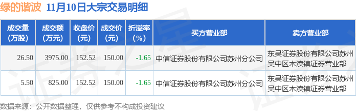 证券之星消息,11月10日绿的谐波发生大宗交易,交易数据如下: