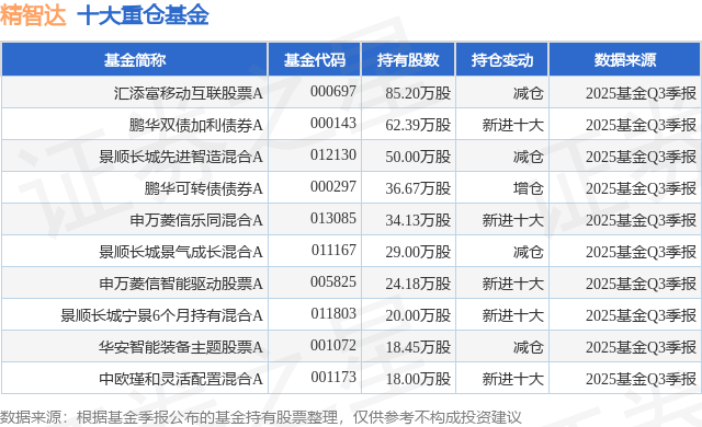 根据2025基金Q3季报公募基金重仓股数据,重仓该股的公募基金共38家,其中持有数量最多的公募基金为汇添富基金的汇添富移动互联股票A。汇添富移动互联股票A目前规模为32.01亿元,最新净值2.575(11月7日),较上一交易日下跌0.81%,近一年上涨64.33%。该公募基金现任基金经理为沈若雨。沈若雨在任的基金产品包括:汇添富创新活力混合A,管理时间为2021年1月12日至今,期间收益率为13.07%;汇添富互联网核心资产六个月持有混合A,管理时间为2021年9月15日至今,期间收益率为29.31%;汇添富ESG可持续成长股票A,管理时间为2023年12月28日至今,期间收益率为97.55%;