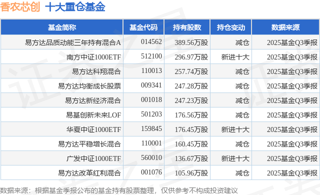 重仓香农芯创的前十大公募基金请见下表: