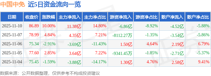 11月10日的资金流向数据方面,主力资金净流入11.38亿元,占总成交额14.8%,游资资金净流出6.86亿元,占总成交额8.92%,散户资金净流出4.52亿元,占总成交额5.88%。