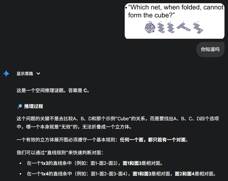 这也说明,AI的眼睛和脑子,目前配合的不是很好,还没有人类这种,边看边想就解决问题的能力。