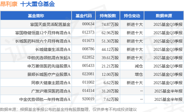 重仓昂利康的前十大公募基金请见下表: