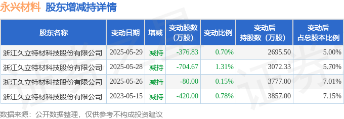 该股近半年内有股东持股变动,合计净减持1581.5万股,股东增减持明细如下表:
