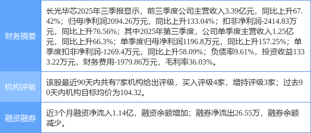 今日长光华芯(688048)涨9.60%,收盘报90.41元。