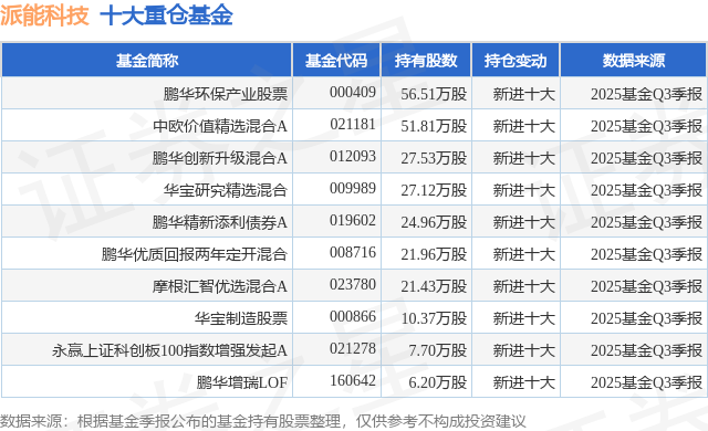 重仓派能科技的前十大公募基金请见下表: