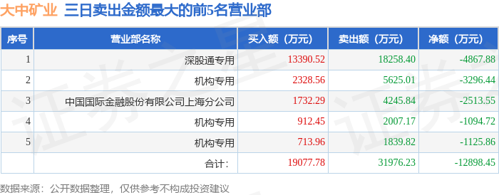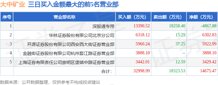 证券之星消息,沪深交易所2025年11月14日公布的交易公开信息显示,大中矿业(001203)因连续三个交易日内,涨幅偏离值累计达到20%的证券登上龙虎榜。此次是近5个交易日内第1次上榜。