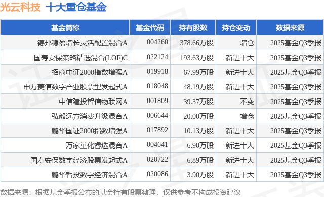 重仓光云科技的前十大公募基金请见下表: