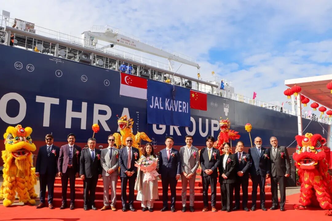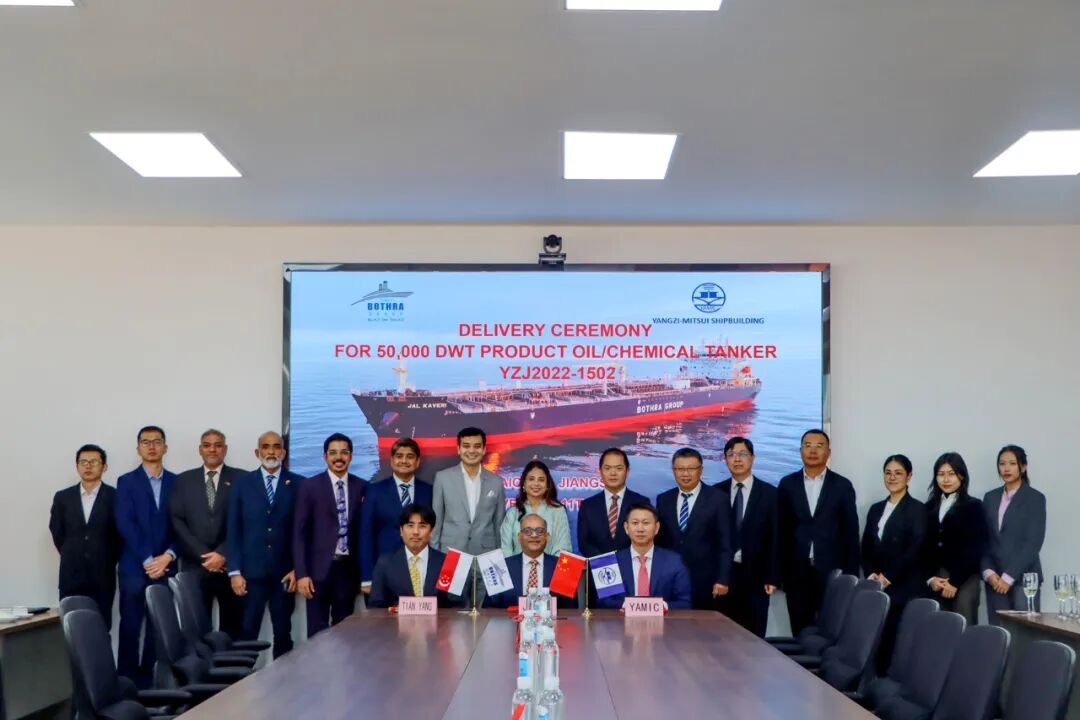 11月14日,我集团扬子三井造船为新加坡船东建造的第五艘新一代绿色环保型50000DWT MR油轮“JAL KAVERI”轮交付离厂,开启首航。