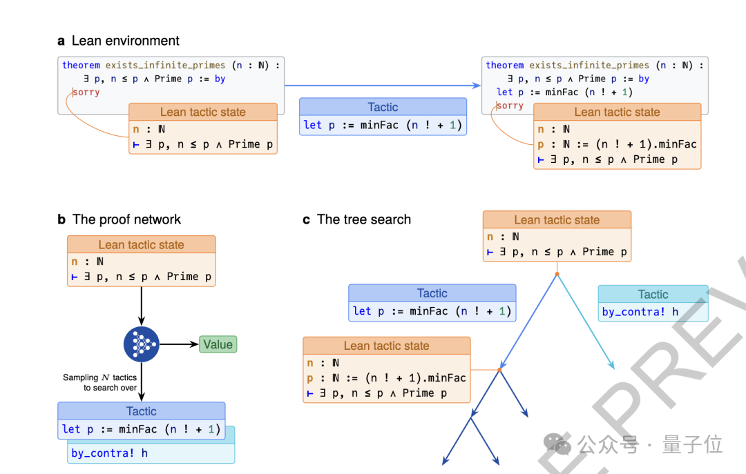 系统基于Lean定理证明器构建了一个强化学习环境。在这个环境中,每个数学命题就是一个新的游戏关卡,AI需要通过选择合适的策略(tactics)来推进证明。