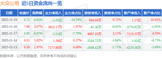 11月19日的资金流向数据方面,主力资金净流出1.25亿元,占总成交额10.74%,游资资金净流入844.94万元,占总成交额0.72%,散户资金净流入1.17亿元,占总成交额10.02%。