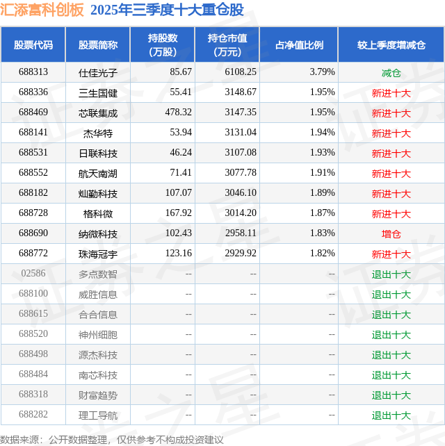 根据2025基金Q3季报公募基金重仓股数据,重仓该股的公募基金共5家,其中持有数量最多的公募基金为汇添富基金的汇添富科创板。汇添富科创板目前规模为16.13亿元,最新净值1.1206(11月18日),较上一交易日下跌1.49%,近一年上涨27.76%。该公募基金现任基金经理为夏正安。夏正安在任的基金产品包括:汇添富创新活力混合A,管理时间为2024年4月30日至今,期间收益率为38.26%。