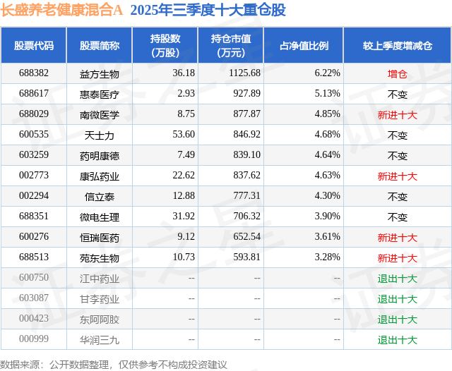 长盛养老健康混合A的前十大重仓股如下: