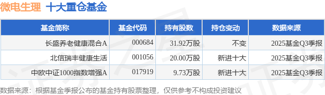 重仓微电生理的公募基金请见下表: