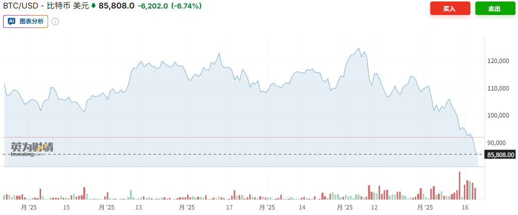 截至发稿,比特币跌至七个月低点,报85808美元。市场买盘乏力,支撑今年早期涨势的动能明显消退。此次回调发生在10月大涨后的仓位持续出清背景下,快速交易资金的撤离和惯性高位持仓使市场更容易受抛压和波动突袭。