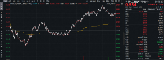 今日(11月24日)A股三大指数集体收涨,AI应用端尤其表现活跃,重点布局国产AI产业链的科创人工智能ETF(589520)午后发力走高,场内涨幅盘中上探2.19%,收涨1.28%,全天成交额2948万元,环比小幅放量。