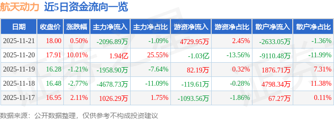 11月21日的资金流向数据方面,主力资金净流出2096.89万元,占总成交额1.09%,游资资金净流入4729.95万元,占总成交额2.45%,散户资金净流出2633.05万元,占总成交额1.36%。