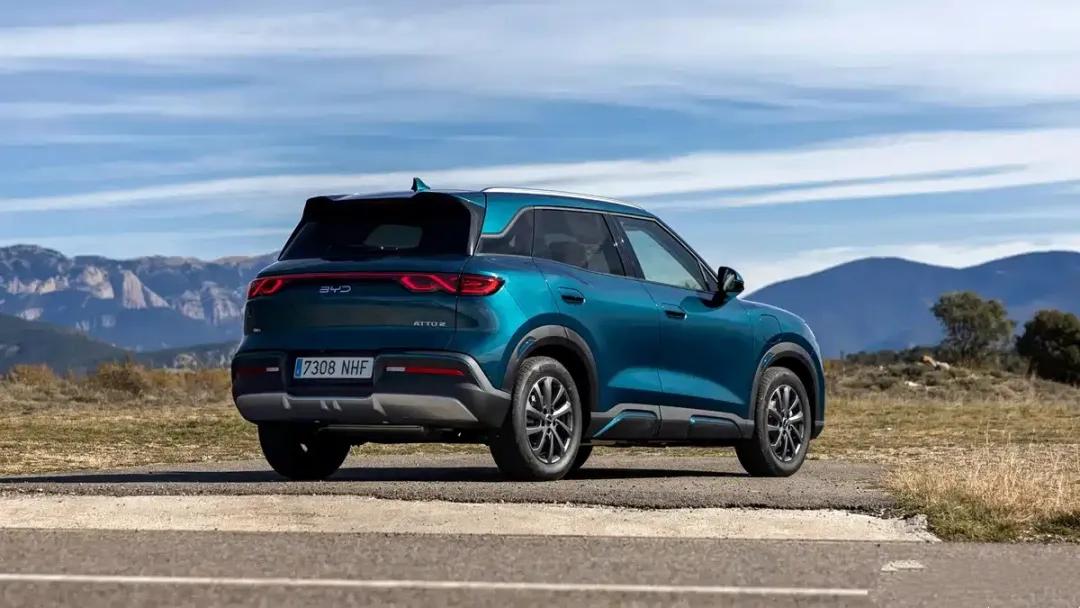 车身尾部,新车整体偏向圆润,顶部配备高扰流板,尾窗倾斜度比较小,新车采用贯穿式尾灯,在尾灯中间则是镶嵌着BYD标识。后包围也是使用大量黑色搪塑材料。