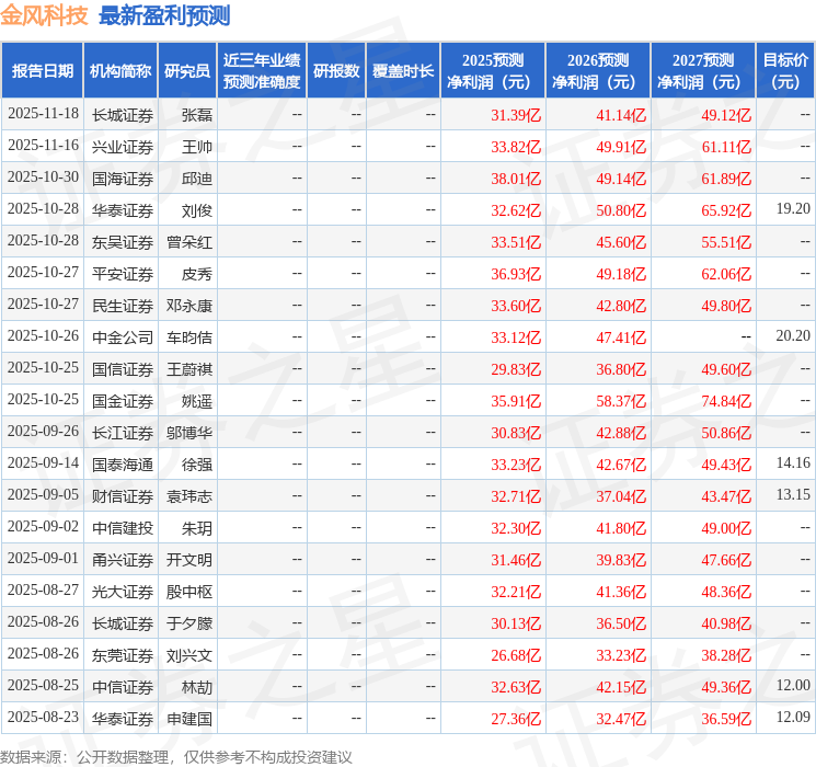 以下是详细的盈利预测信息: