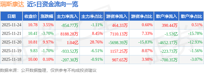 11月24日的资金流向数据方面,主力资金净流出854.77万元,占总成交额1.11%,游资资金净流入464.33万元,占总成交额0.6%,散户资金净流入390.44万元,占总成交额0.51%。
