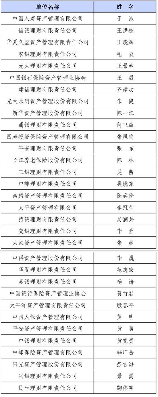 11月26日,中国银行保险资产管理业协会召开第四届会员代表大会第一次会议,进行换届选举,第四届理事会选举结果名单如下: