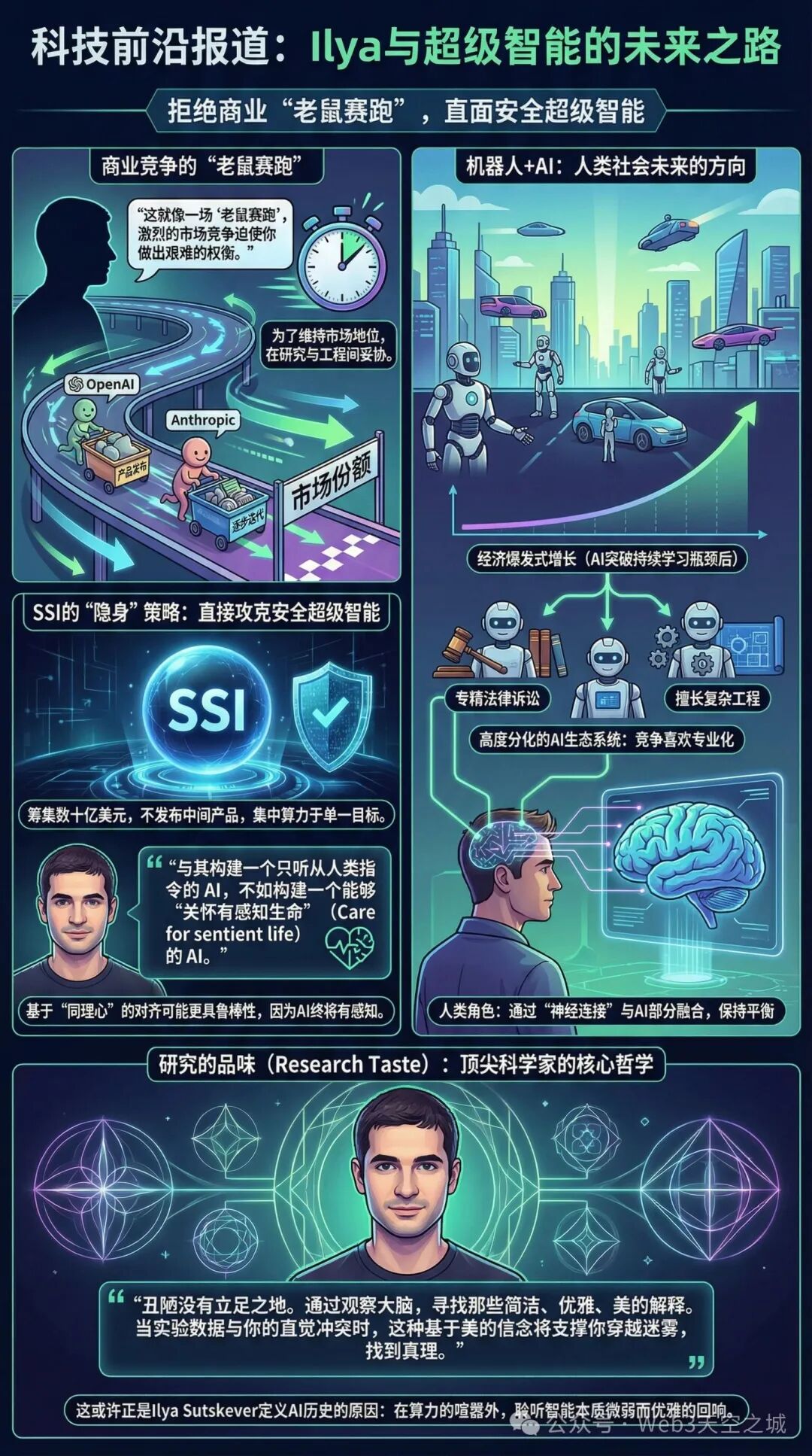 直接追求超级智能:SSI 旨在避开短期商业竞争的“老鼠赛跑”,专注于构建安全、关怀有感知生命的超级智能。