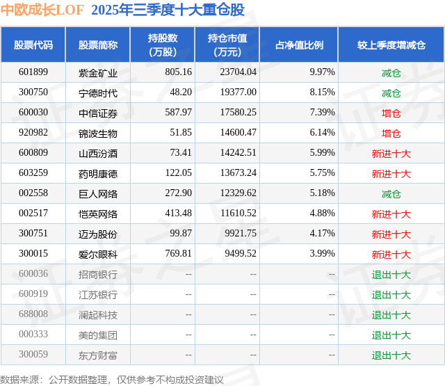 根据2025基金Q3季报公募基金重仓股数据,重仓该股的公募基金共14家,其中持有数量最多的公募基金为中欧基金的中欧成长LOF。中欧成长LOF目前规模为21.03亿元,最新净值2.0961(11月25日),较上一交易日上涨1.34%,近一年上涨37.02%。该公募基金现任基金经理为王培 尹为醇。王培在任的基金产品包括:中欧创新成长灵活配置混合A,管理时间为2018年3月26日至今,期间收益率为77.33%;中欧启航三年混合A,管理时间为2019年12月24日至今,期间收益率为39.44%;中欧责任投资混合A,管理时间为2020年9月10日至今,期间收益率为-9.35%。尹为醇在任的基金产品包括:中欧创新成长灵活配置混合A,管理时间为2021年3月20日至今,期间收益率为-14.3%;中欧责任投资混合A,管理时间为2022年7月7日至今,期间收益率为-1.23%;中欧成长领航一年持有混合A,管理时间为2022年7月7日至今,期间收益率为0.69%;