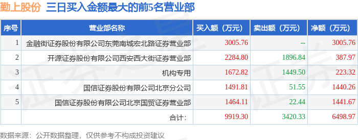 证券小知识:龙虎榜是交易所披露的竞价交易公开信息,现身龙虎榜的个股都是当日最为活跃的个股,是投资者日常重点关注的数据。交易所公布当日买入金额和卖出金额前五名的席位,其中一些席位代表特殊意义,如机构专用席位是指基金专用席位、券商自营专用席位、社保专用席位、券商理财专用席位、保险机构专用席位、保险机构租用席位、QFII专用席位等机构投资者买卖证券的专用通道和席位。深股通专用、沪股通专用为北向资金的交易席位。从龙虎榜数据可以发现和研究机构、游资和散户的资金动向。一些营业部席位经常上榜,市场知名度较高,投资者整理代表散户、游资、量化等不同资金的营业部席位。